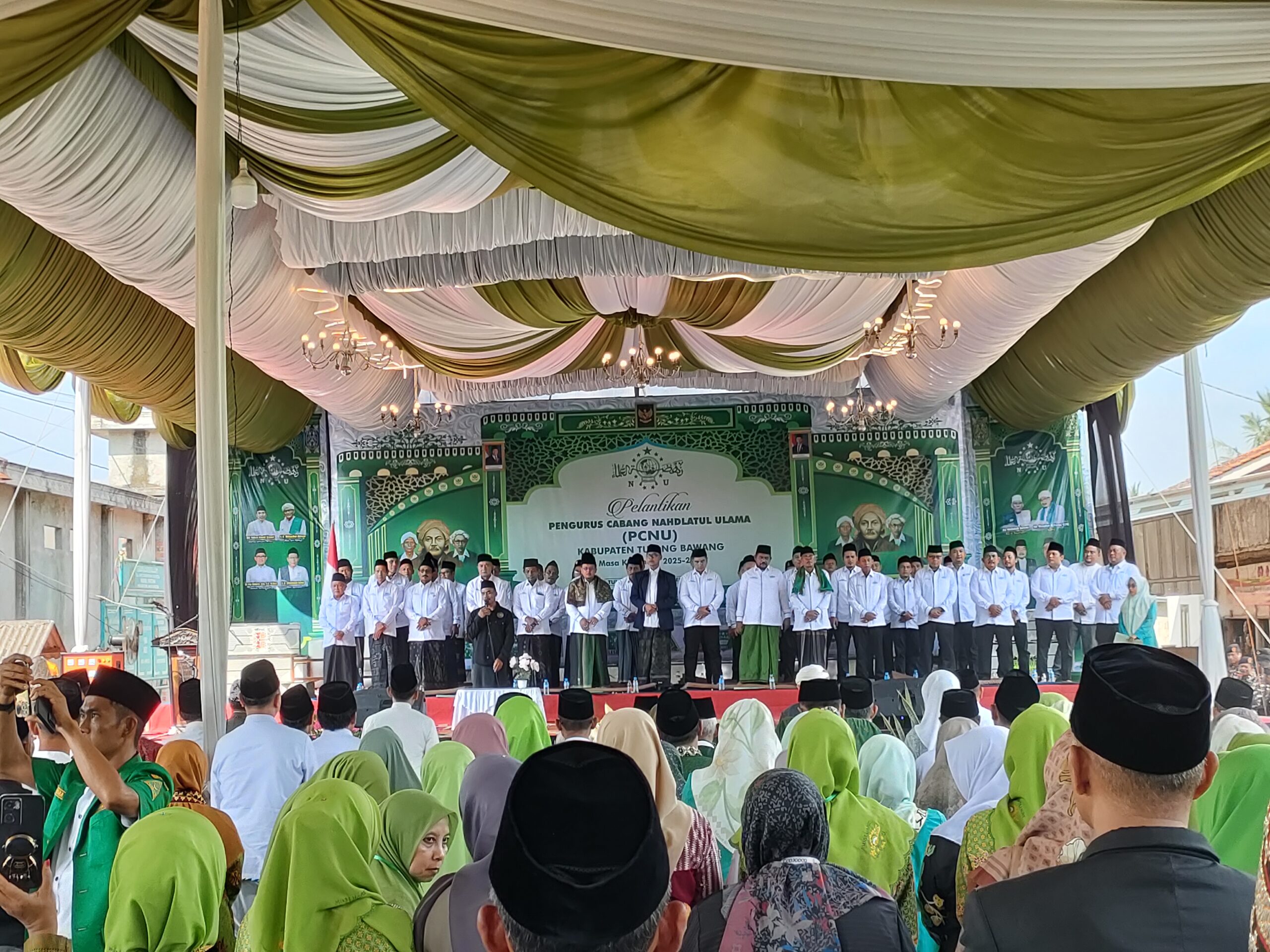 Penawarjaya — Dewan Pimpinan Daerah Lembaga Dakwah Islam Indonesia (DPD LDII) Kabupaten Tulang Bawang menghadiri acara pelantikan Pengurus Cabang Nahdlatul Ulama (PCNU) Kabupaten Tulang Bawang Masa Khidmat 2025–2030 yang digelar hari ini di Kampung Penawarjaya.